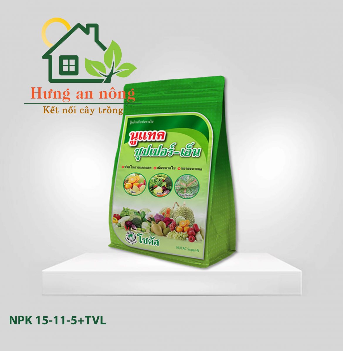 Lợi ích: Thúc đẩy lá non của cây phát triển nhanh hơn, giúp cây phát triển nhanh. Nutac Super-N là một dưỡng chất giúp cho xanh lá, cây to, thúc cho ra hoa sớm hơn cả trong và ngoài thời vụ. Giúp to trái, dầy cơm, chống rụng. Phù hợp cho tất cả các loại cây trồng, cây kiểng.